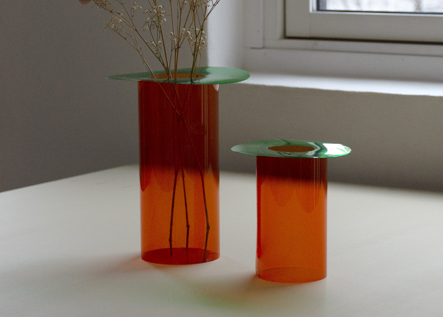 The idea for ‘ Rabarbra’ is quite simple – a vase made from a cylinder and a disc. The initial sketch was extremely rudimentary. Our approach was to work directly in full scale using colored plastic foil to make simple models.